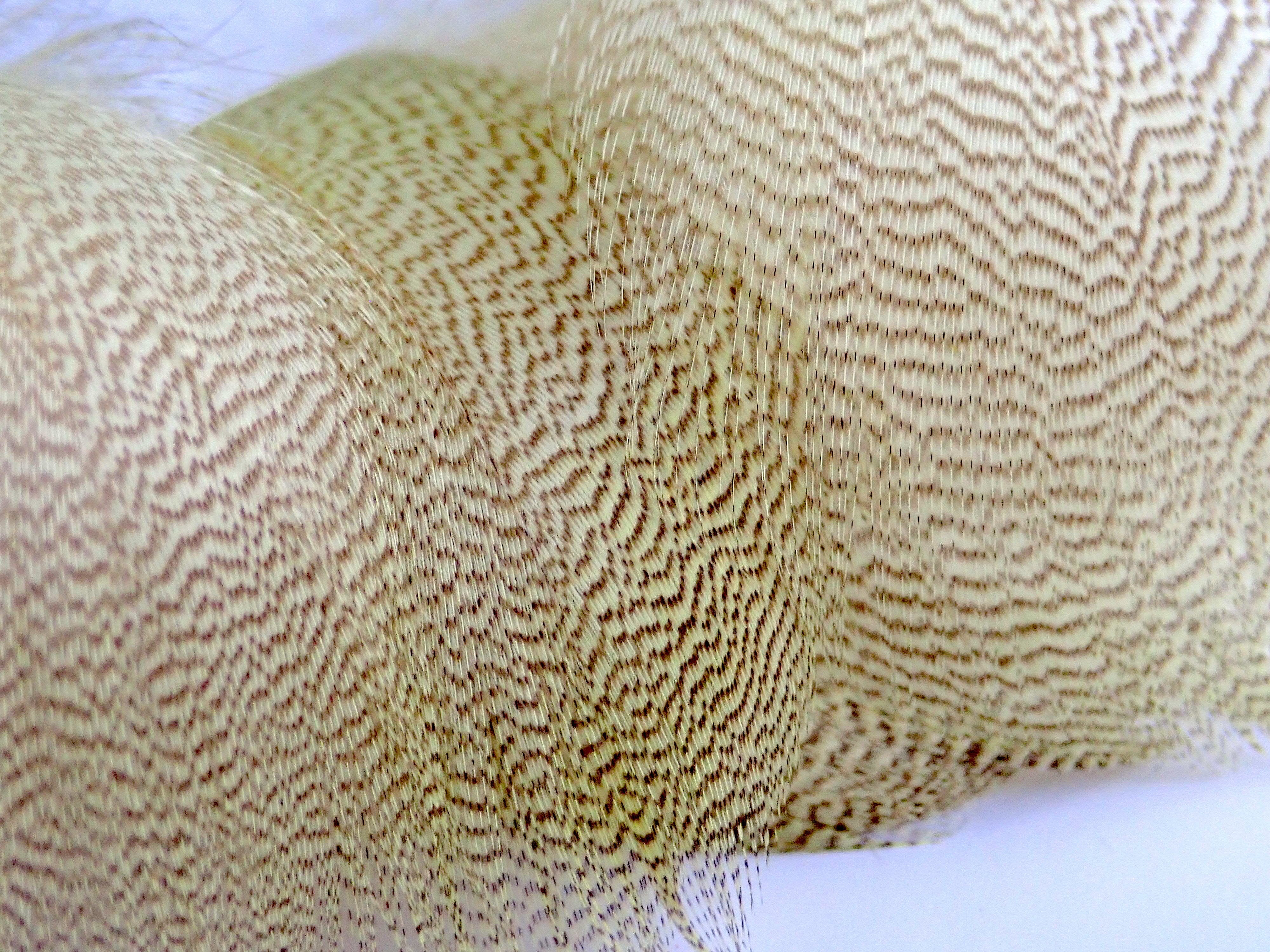 マラードダックを染色したレモンウッドダックのイミテーションです。現在、狩猟が許可されているのはアメリカン・ウッドダックだけですので、供給量には限界があり、価格も非常に高価なものになってしまいました。各メーカーよりマラードフェザーを染色したものが発売されておりますが、イエローが強すぎたり、ブラウン寄りだったり、しっくりくるカラーを見つけることも難しい状況です。当店の完成フライにも使われますので、AFSが理想とするカラーに自家染色したフェザーを商品として提供致します。